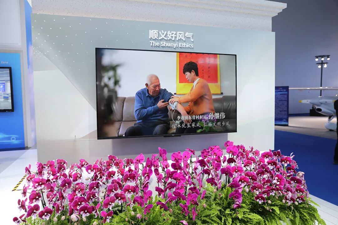 后部生活生态展示区则满溢人文气息,多个创新场景传递顺义温度:首次增设的直播间内,燕京啤酒、牛栏山酒厂、顺鑫牵手轮番直播,实现“产业价值+流量价值”双向奔赴;“顺义好风气”大屏循环播放王广洋、钟鸣等“北京榜样”的先进事迹,传递向上向善的精神力量;“国际化环境”展示大屏通过系列宣传片及“吃住行游购娱”主题照片,全方位立体展现顺义的国际范儿;“顺义好礼”市集上,北京华江文化集团出品的杭州亚运会主题餐具典雅庄重、北京华彩创佳文化传播有限公司的北京古代建筑系列冰箱贴韵味十足、顺义文旅集团的鲜花花艺和蝴蝶标本相映成趣;旁侧艺术角陈列着罗红摄影艺术馆、松美术馆精选影像,更添雅致氛围。