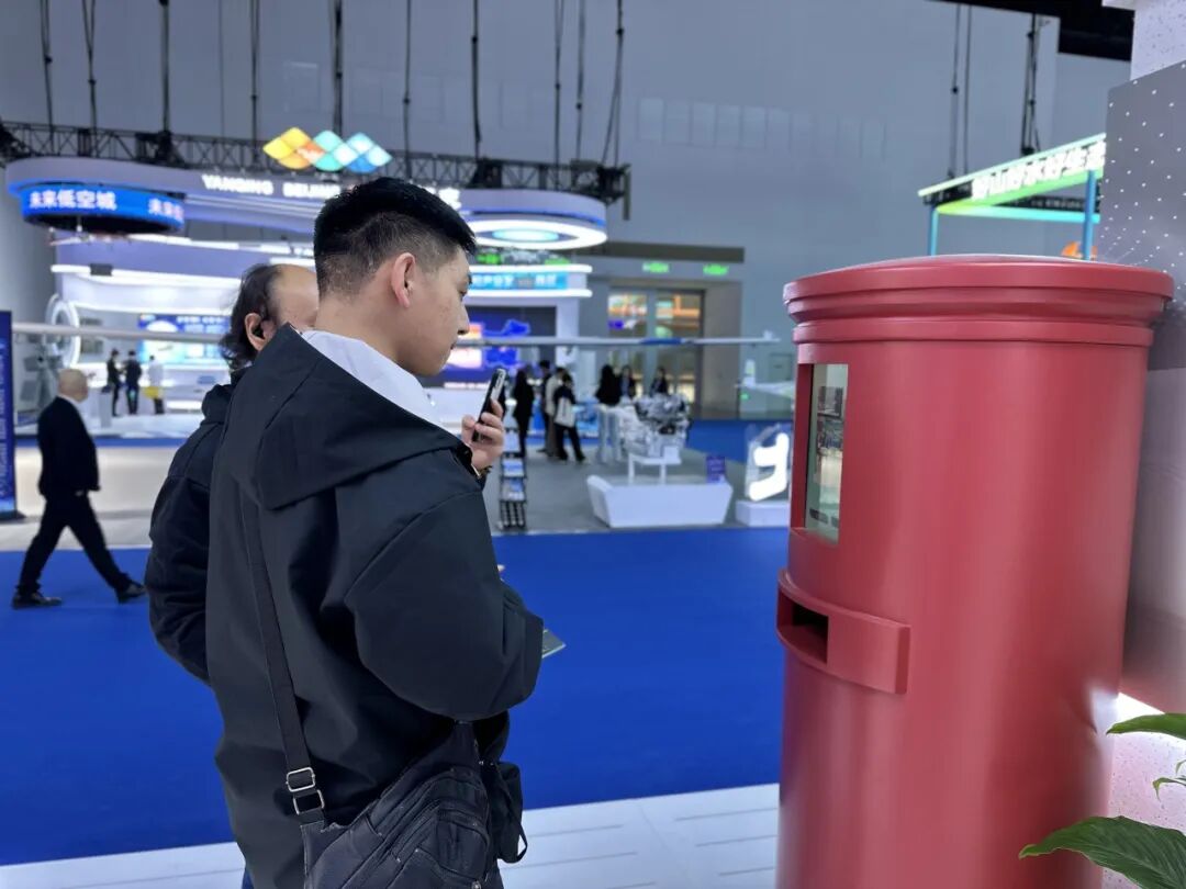 前沿科技体验渗透展区每个角落:机械臂交互装置与上方巨幕影片实时动态呼应,AI数字人“小义”提供多维度智能语音咨询,“邮你定格”邮筒打印装置可扫码打印展会精彩瞬间照片,智能技术让每个场景都充满新鲜感与参与感。