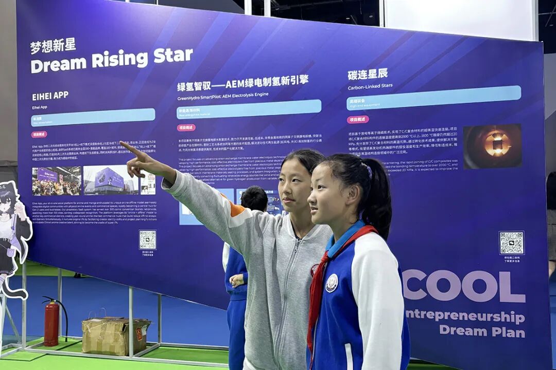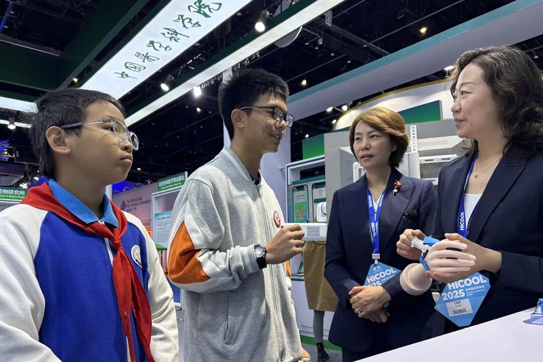 在HICOOL 2025大赛获奖项目展区,学生们聆听青年创业者经验分享、认真记录,感受一个个创业项目由创新想法到破土而出、落地生根的历程。仁和中学初二(15)班学生贺子千向记者谈起了参观感受:“在这里,我看到了许多充满创意的项目,其中有不少创业者还是大学生,这非常值得我们学习,希望长大以后我也能成为像他们一样的人。”