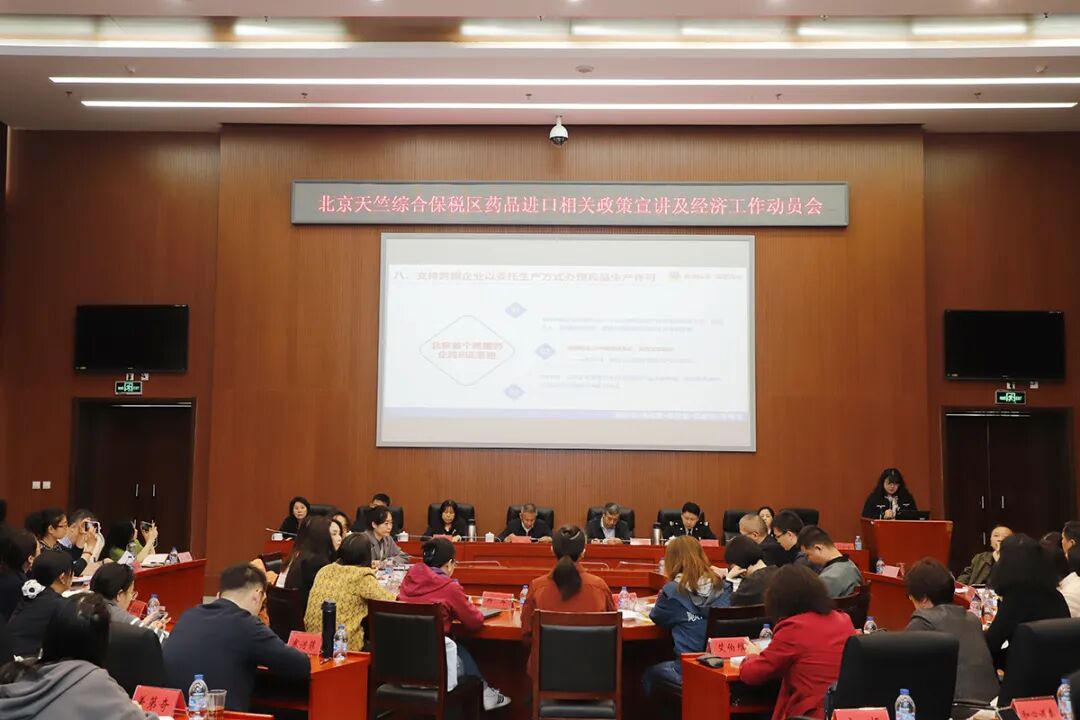 北京天竺综合保税区药品进口相关政策宣讲及经济工作动员会现场。