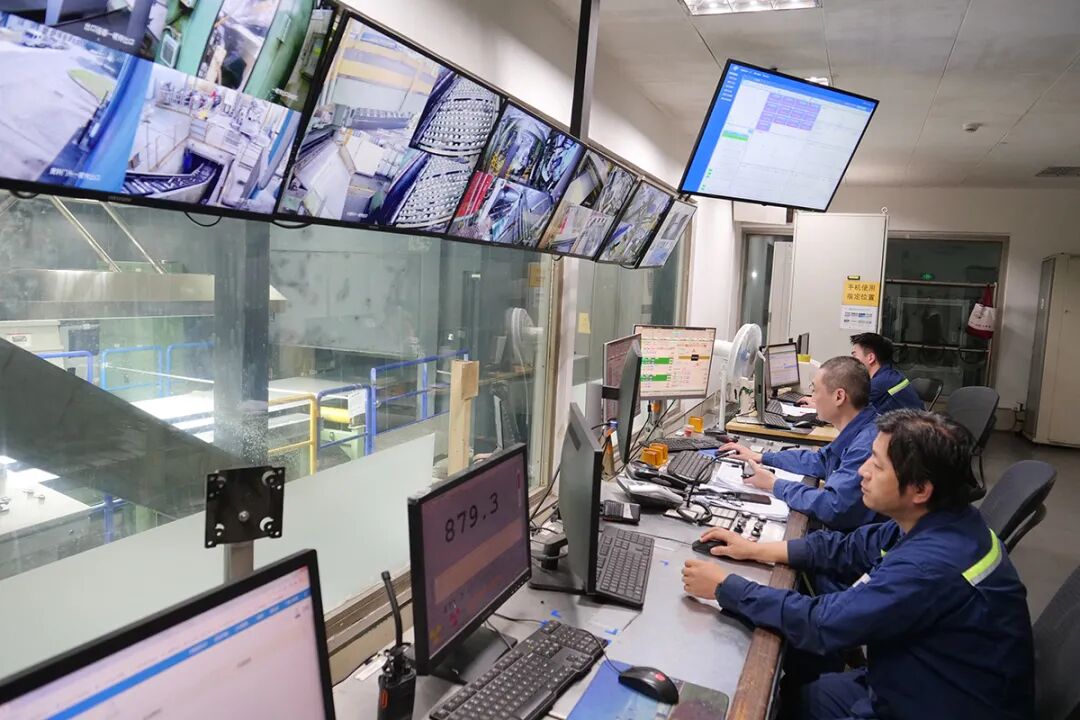 工作人员监控上卷和焊接工序。