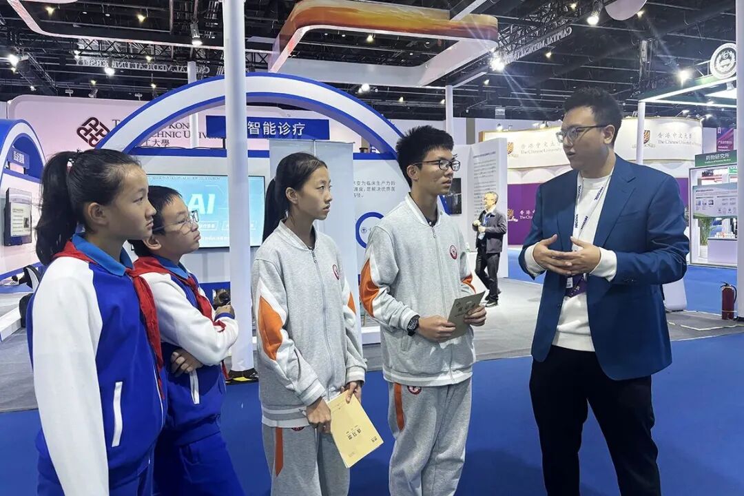 今年的HICOOL峰会首设世界一流高校展区。活动现场,中小学生们在清华大学、北京大学、香港理工大学等展位前驻足了解。