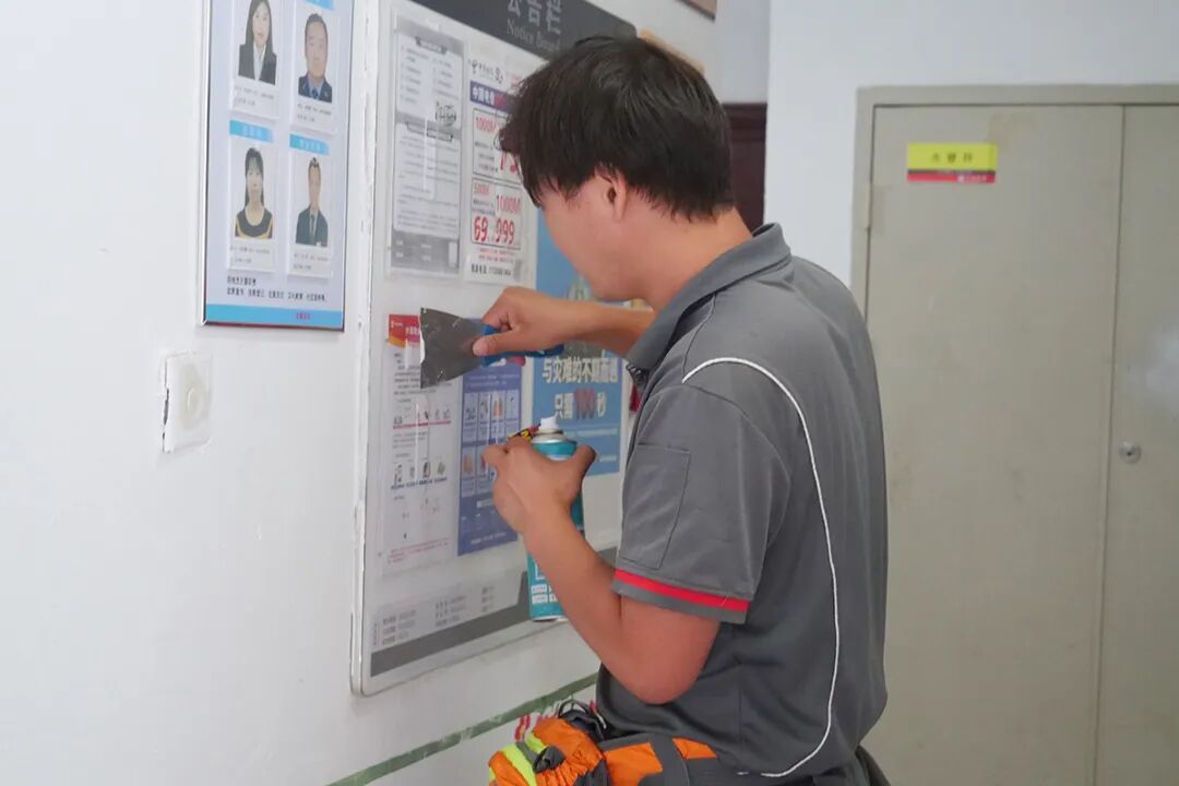 2024年10月,社区成立梅好兰图骑手志愿服务队。志愿者们随身携带社区配发的清洁应急包,在送单途中随手清理小广告、处理墙面污渍,发现问题及时在群内上报。