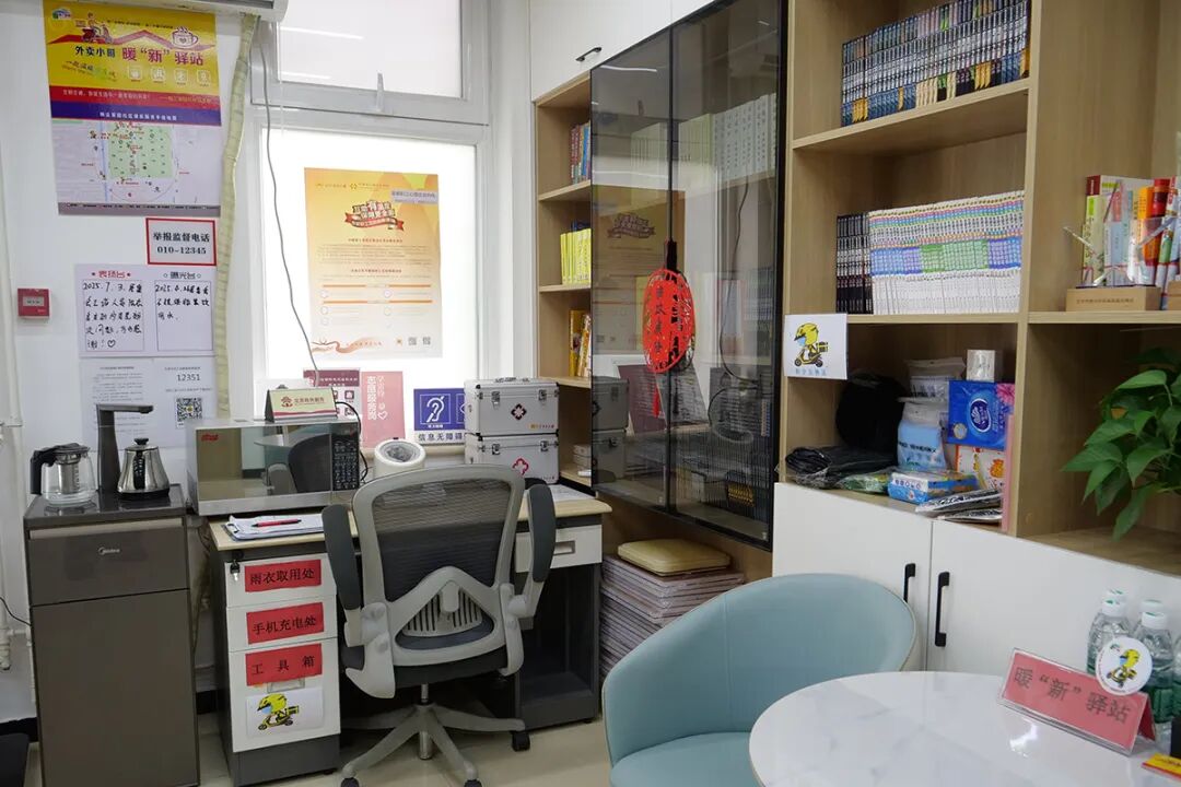 社区工作人员提前对辖区内50余名快递员、外卖员进行走访,详细记录他们对休息场所的具体需求。金色时光则积极响应,主动将接待大厅作为驿站场地,并根据社区反馈的需求清单,提供了座椅、饮水机及充电插座等。