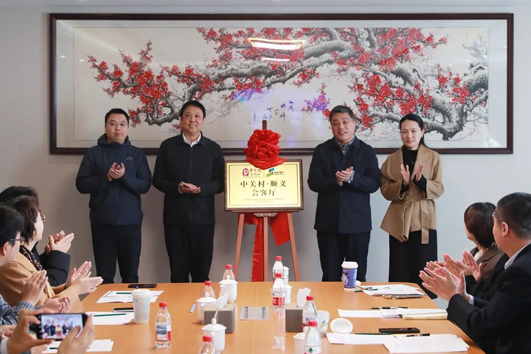 活动现场,与会嘉宾共同为“中关村顺义会客厅”揭牌,标志着会客厅启用,将为区域科技成果转化、创新资源对接提供全新平台。