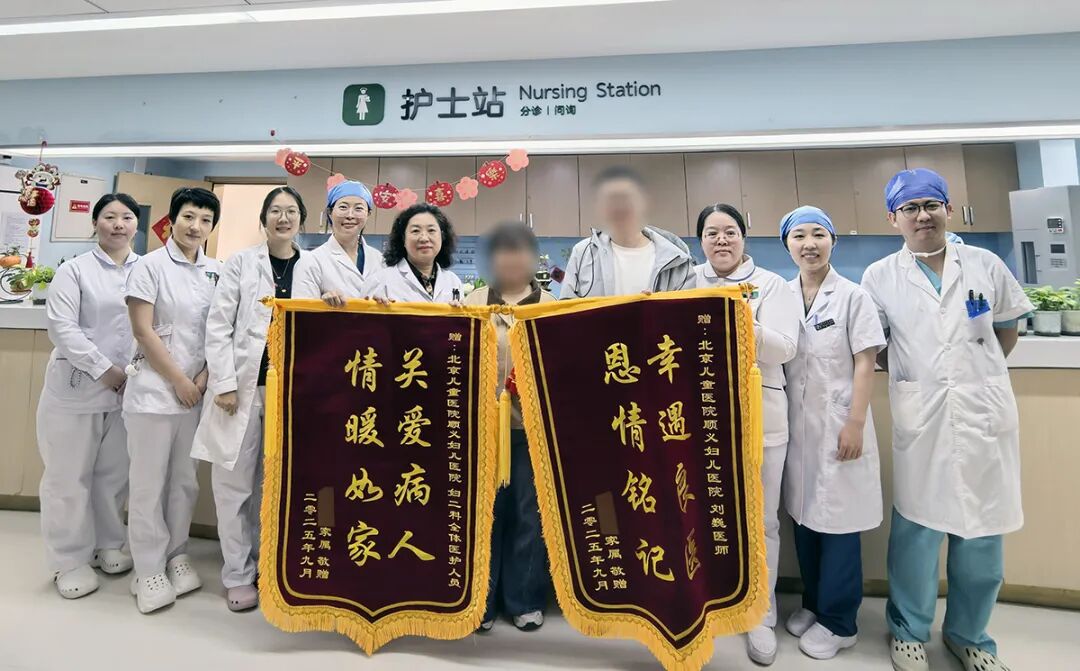 10月9日,其其格的丈夫和儿女专程从内蒙古跨越千里赶来,手捧锦旗再次走进北京儿童医院顺义妇儿医院。“我们从草原过来,就是想当面说声谢谢!是你们及时发现,才保住了我们这个家!”其其格的丈夫握着刘巍医生的手说。