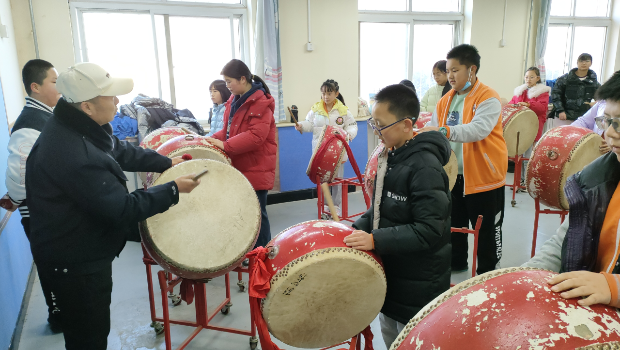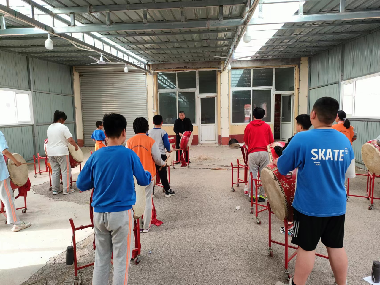 利用课后服务活动课时间及寒暑假分批次安排五、六年级学生开展集体训练。重点加强了节奏及动作要领的训练,对接受能力较快的部分学生强化了整套曾庄大鼓的指导训练。