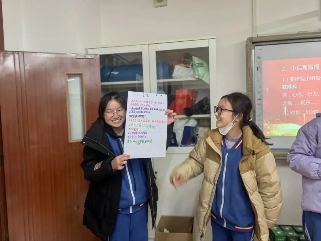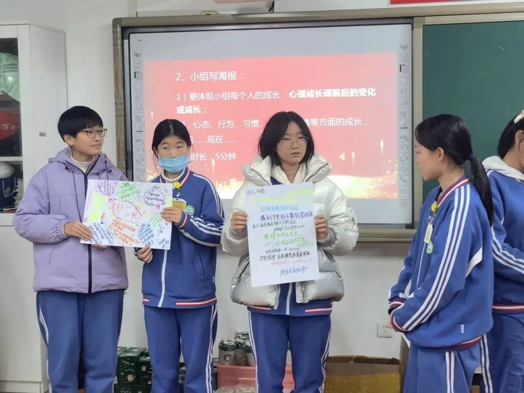 心理成长课共8次,主要针对初中生的心理特点、面临的困惑以及如何用积极心态面对生活和学习而开设。在学习过程中,心理教师团队与学生一起进行成长探索,主要安排了“创建团队认识自己”“撕名牌:ABC理论”“心态与方法”“跳出自我设限”“拼图游戏:舒适区vs痛苦区”“情绪管理和梦想板”等多项内容。12月11日,最后一次心理成长课——“成长收获季”圆满结课,同学们在老师的带领下,盘点了8次心理成长课上团队以及个人成长,专注聆听每一位老师的祝福。
