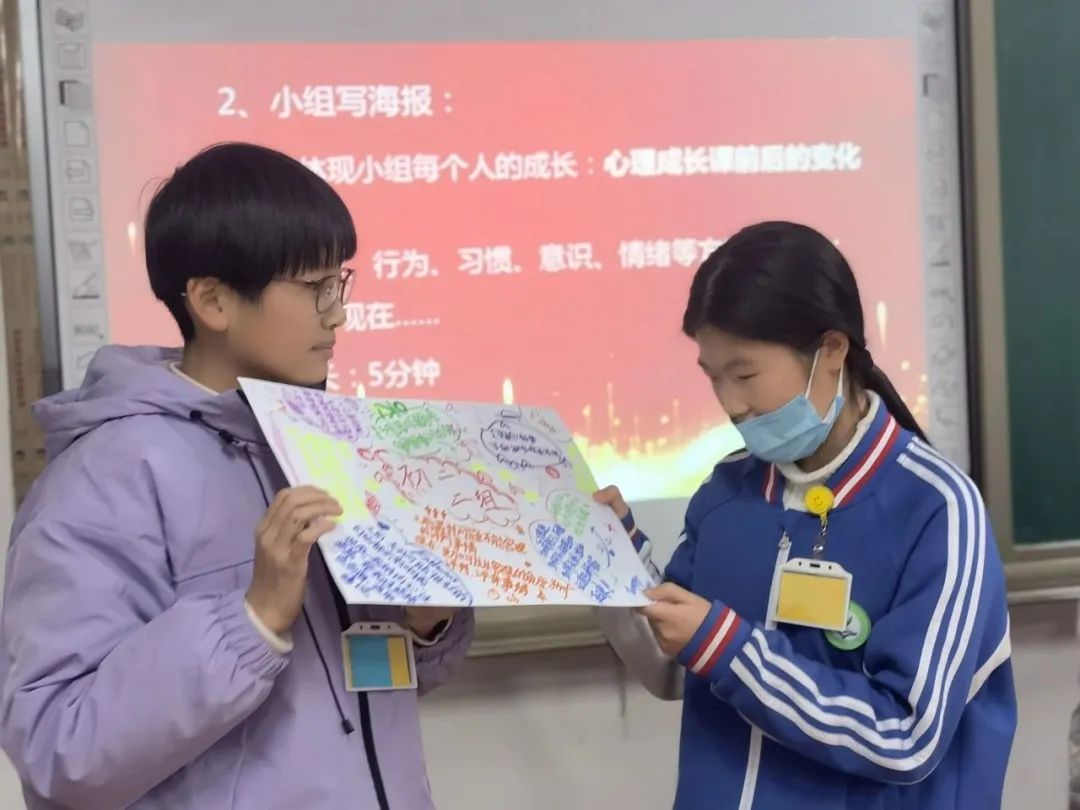 此次心理成长课不是教师传授相关的心理学知识,而是通过一系列的体验式活动,让学生参与其中,有深刻的体会。润物无声,引领学生自己思考、自己感悟、自己说出解决问题的办法。不仅调动了同学们的积极性,也增强了孩子们的自信心。