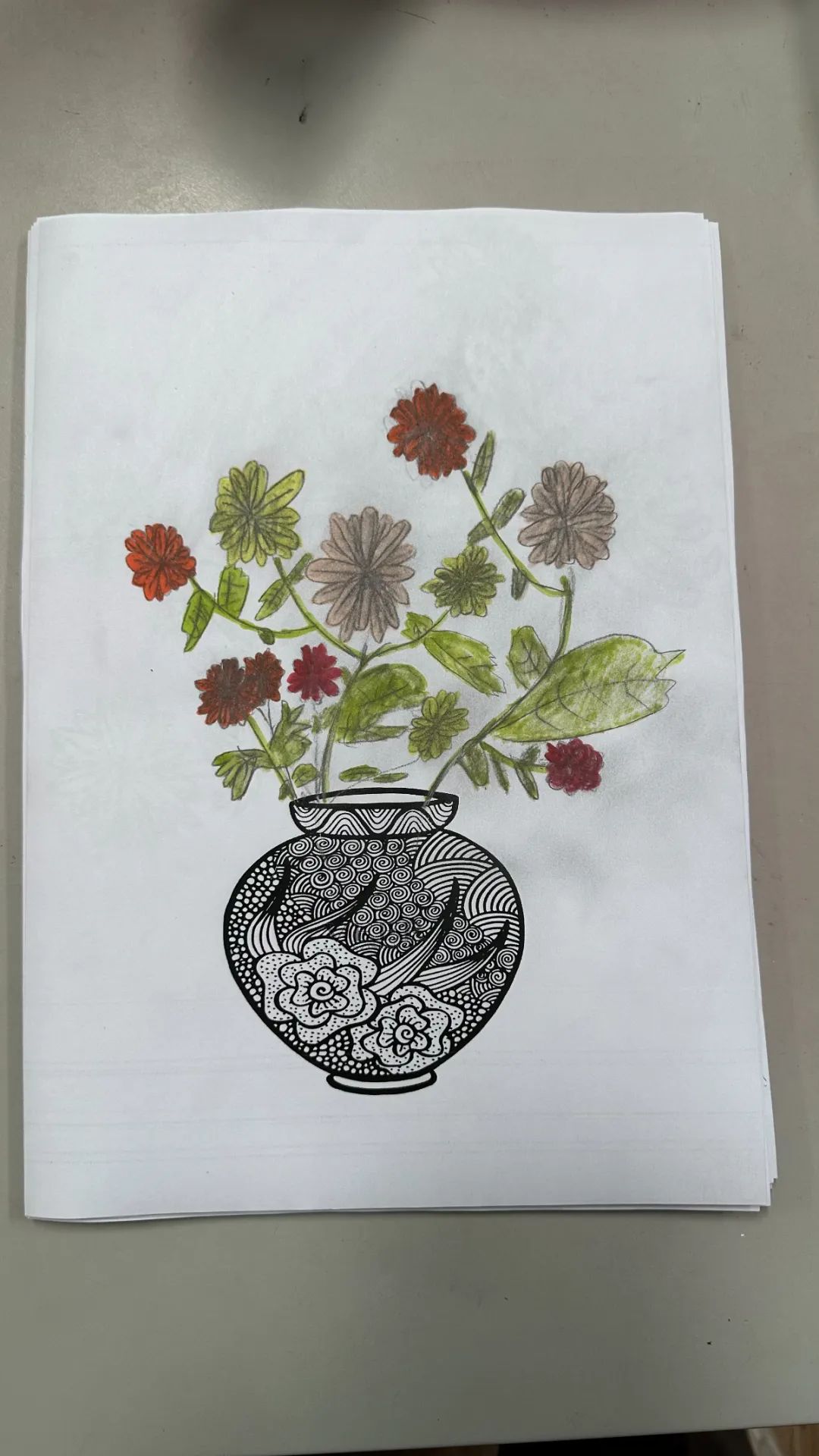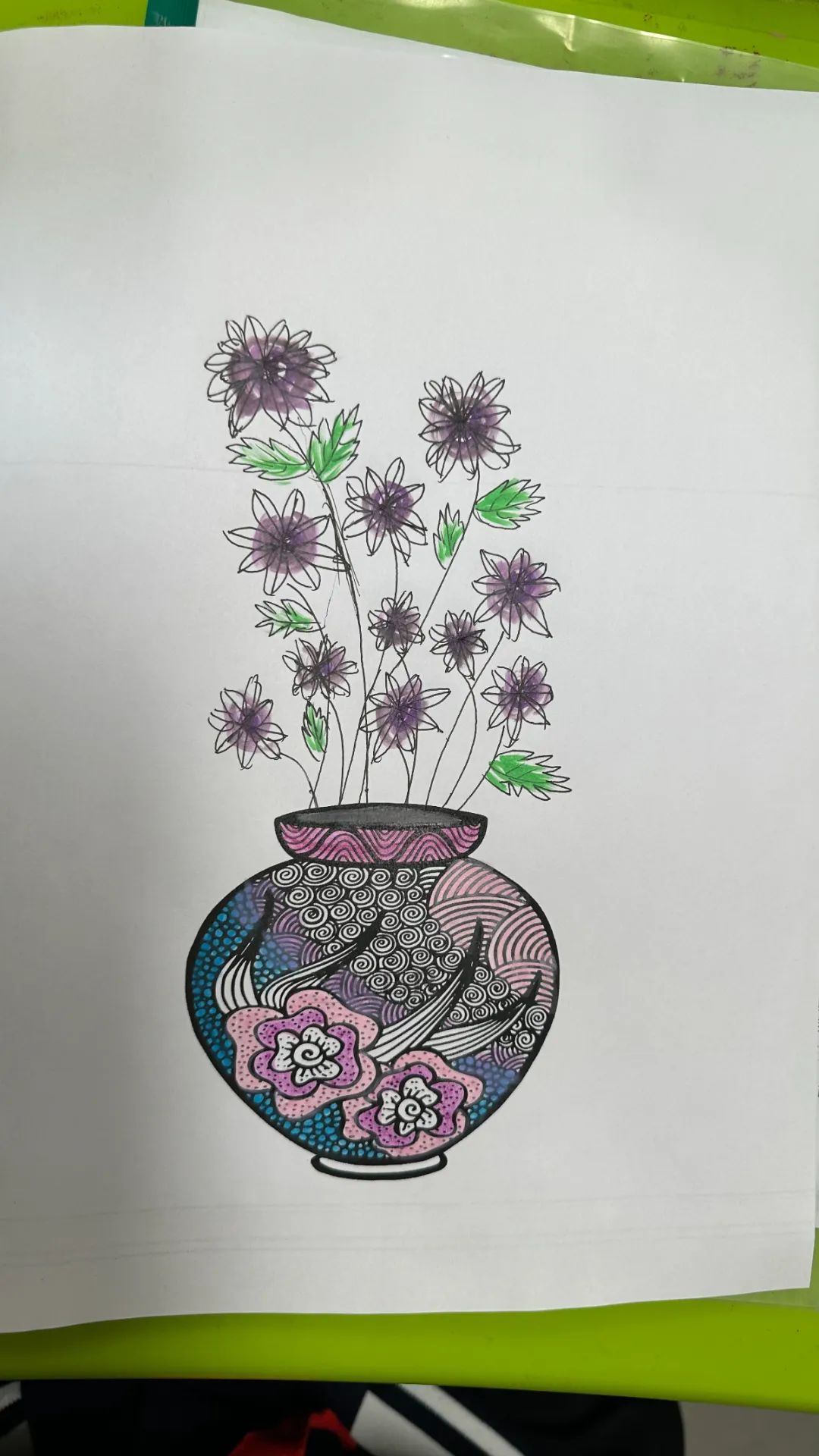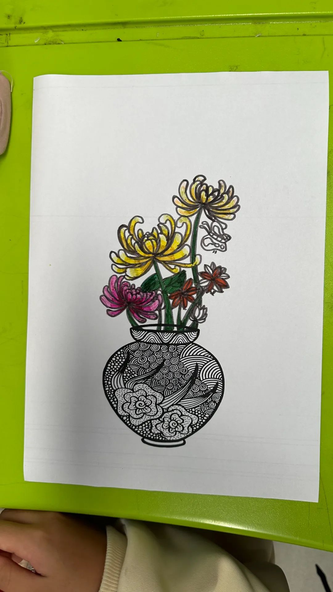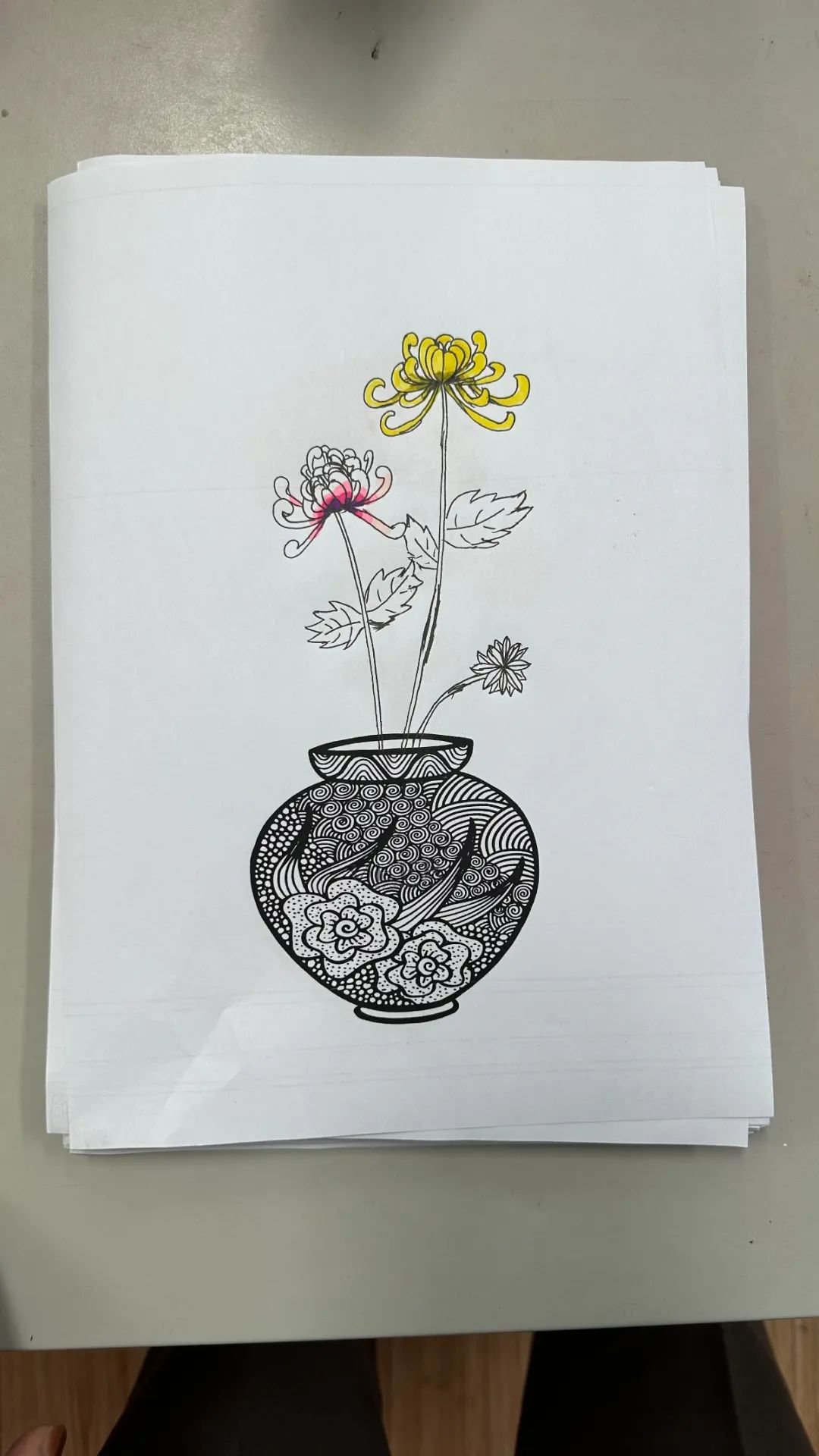 在美术课程中,教师带领同学们以重阳文化中的菊花为创作元素。通过赏菊观察菊花的结构、生长形态,通过绘菊学习菊花的画法,创作艺术作品,表达自己对老人的节日祝福。请看同学们的精彩作品:
