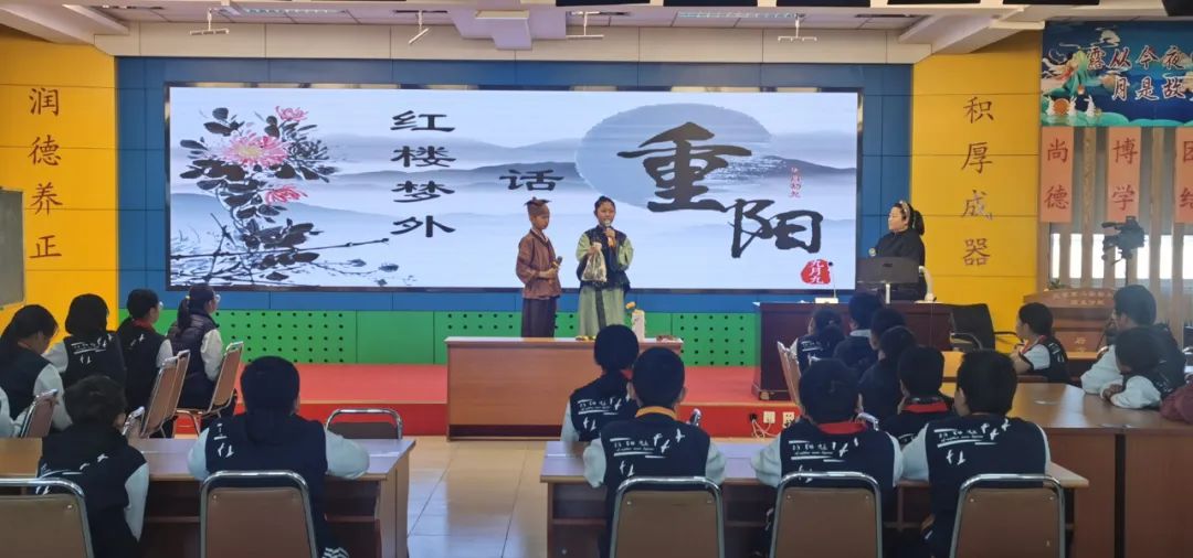 在科学课程中,教师以红楼梦中过重阳的场景为背景,带领同学们了解重阳美食中重阳糕、重阳酒的制作方法,深入探究重阳植物茱萸和菊花的科学知识和药用价值,同学们在情景剧演绎、舞蹈表演中兴趣盎然,在愉悦的氛围中感悟重阳中的科学文化内涵。
