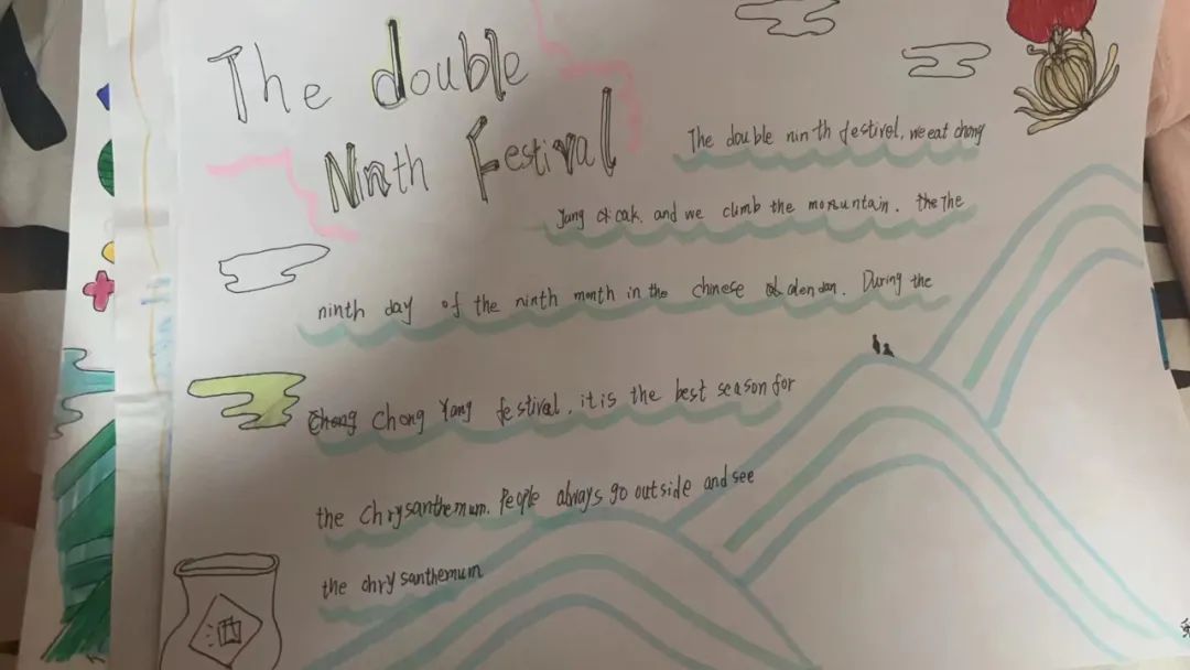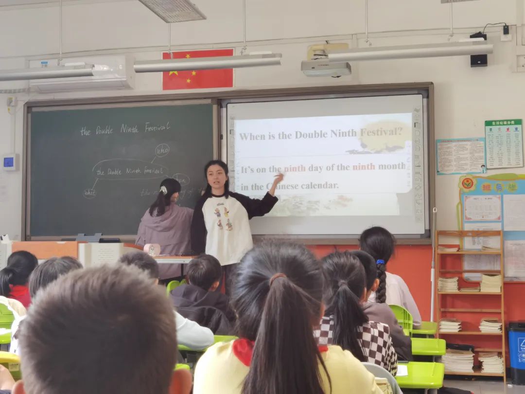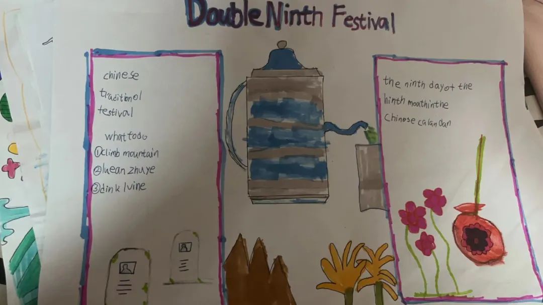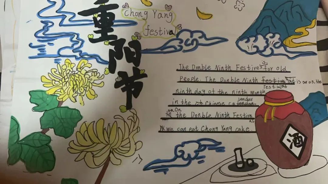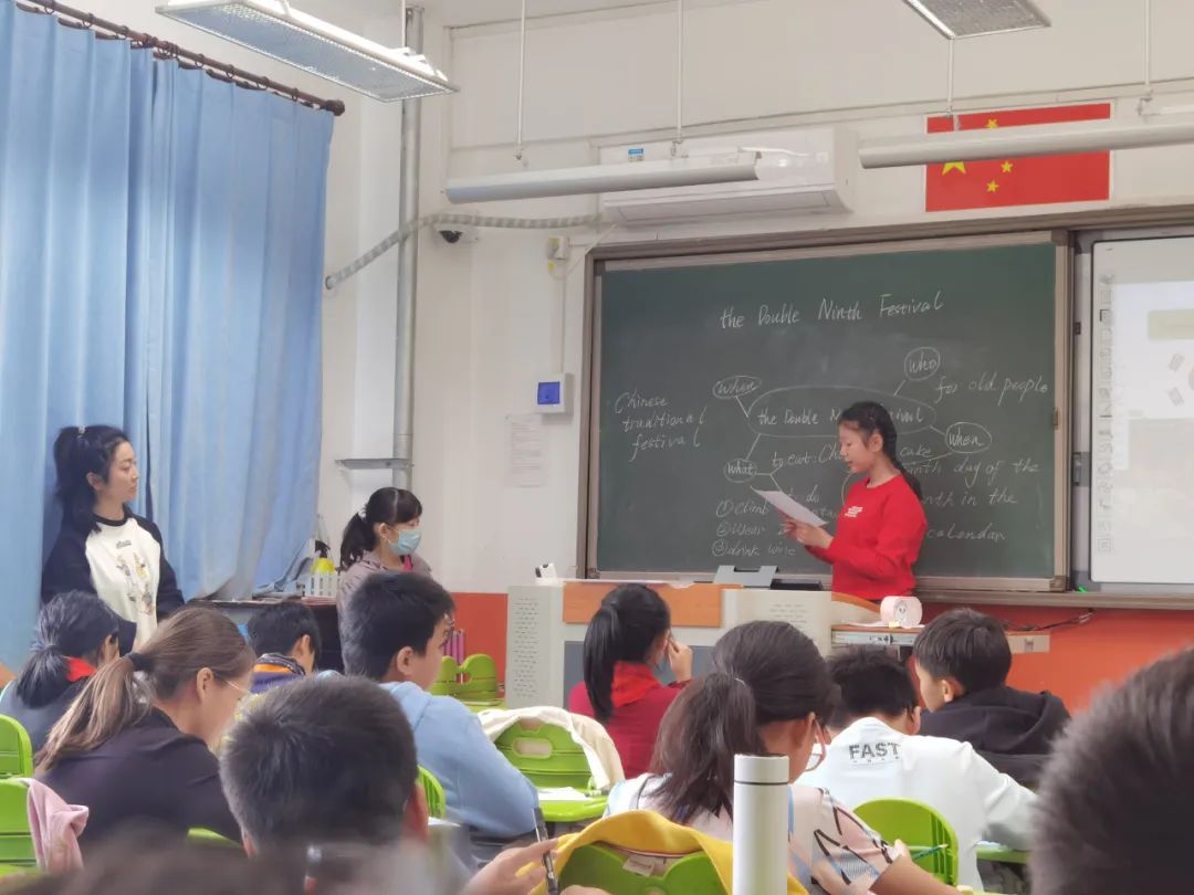 在英语课程中,同学们围绕节日名称、节日时间、节日美食、节日活动几方面学习用英语介绍重阳节日文化,增强文化自信,提高跨文化交际的能力。