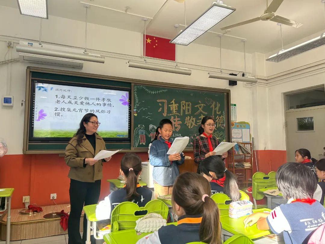 科任教师们根据自己所教学科特点,进行重阳综合实践课程设计,教师引领同学们进行主题探究活动。