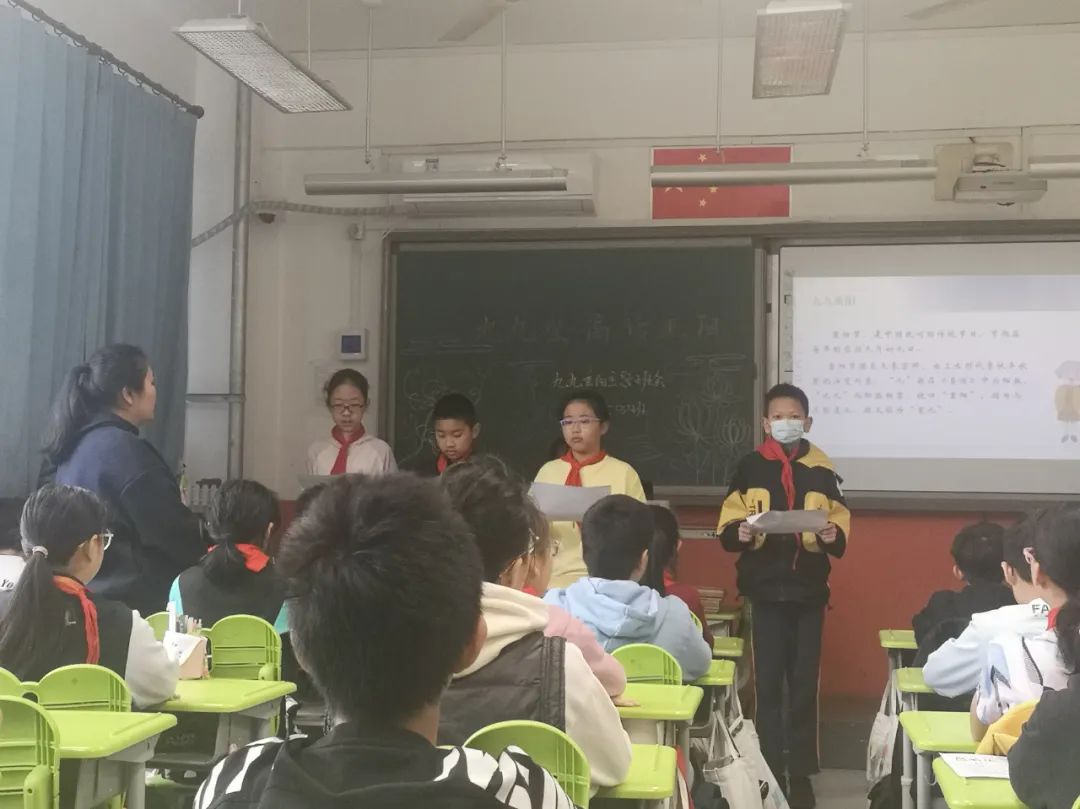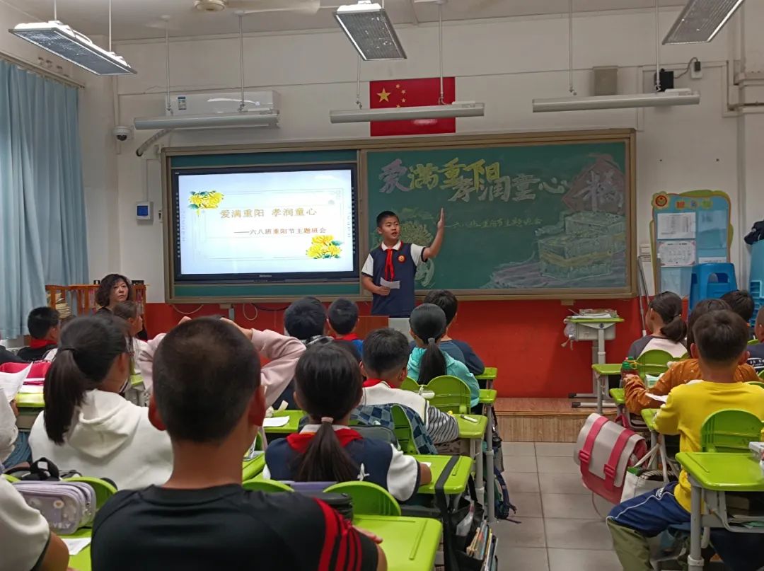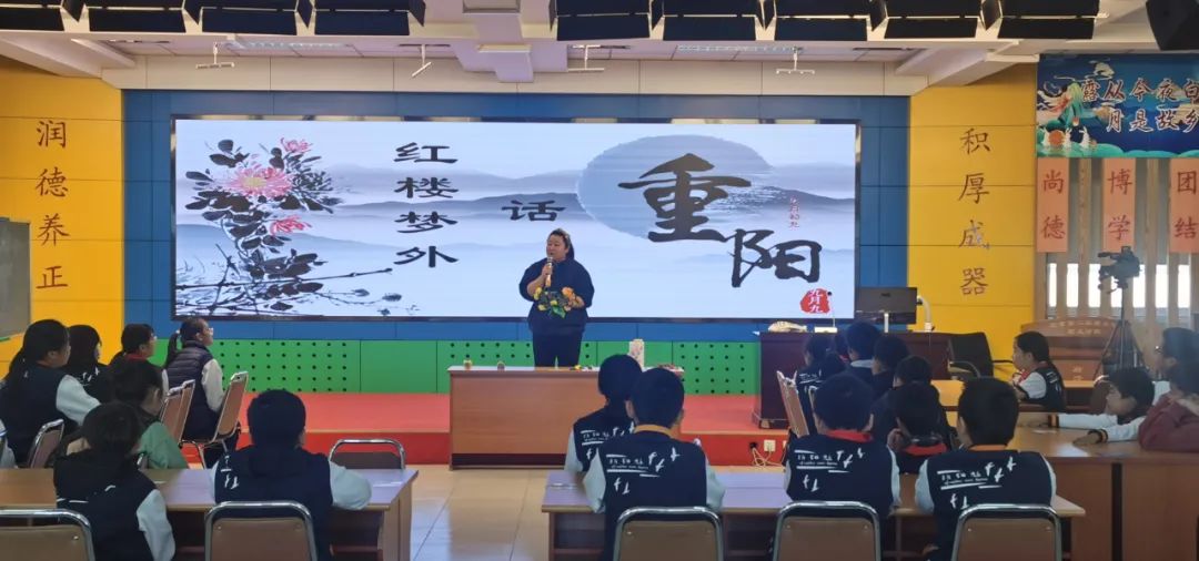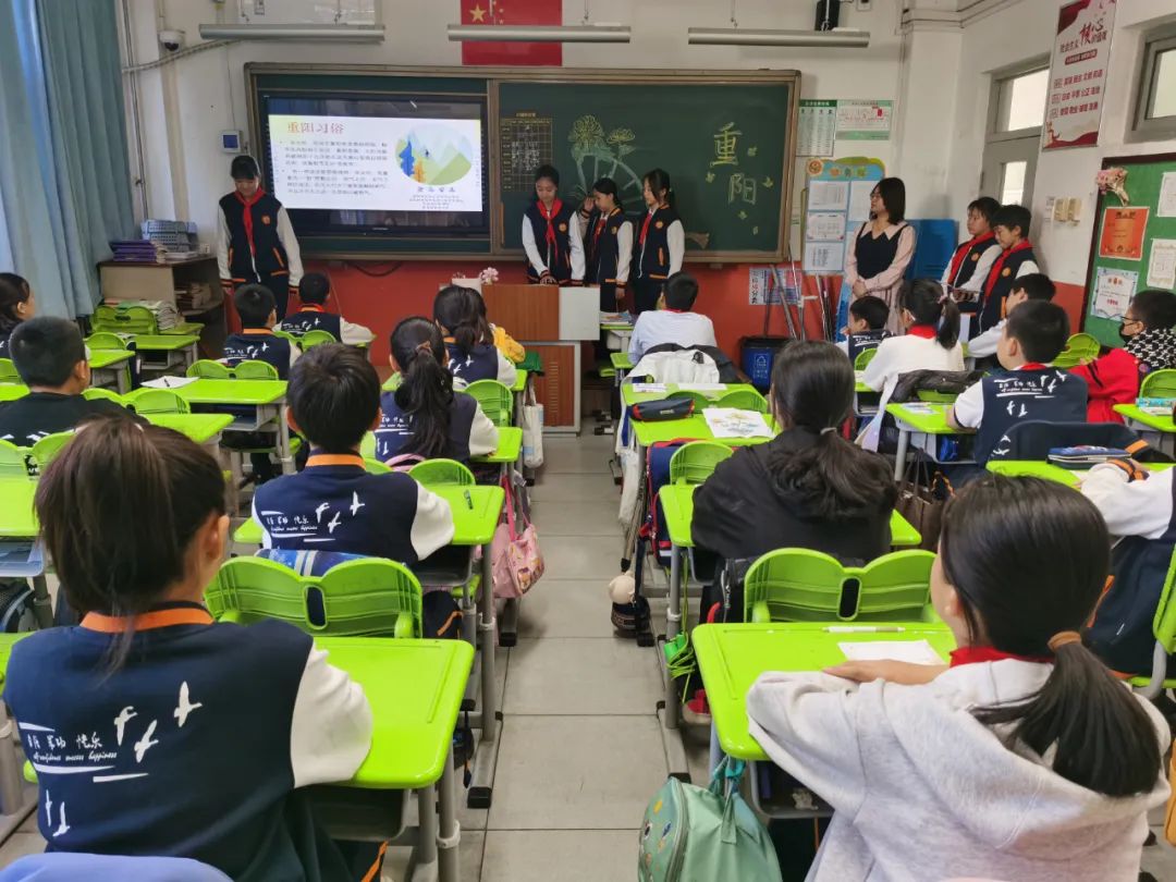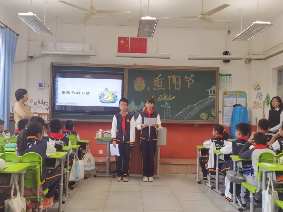 班主任教师组织学生进行以“感恩敬重阳”为主题的教育活动,学生们综合梳理课程学习中的收获进行学习成果汇报:重阳节的历史演变、重阳习俗的细致演绎、重阳诗词的朗声吟诵、尊老敬老的身边故事、对家中老人的肺腑之言、为老人设计制作的重阳礼物……每位同学都是重阳文化的代言人,在亲情洋溢的氛围中感悟重阳节蕴藏的精神价值,明确敬老孝亲要落实在每日行动中。