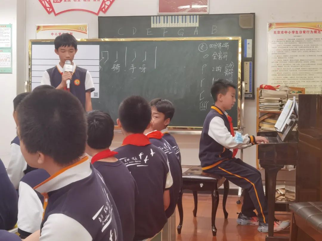 在音乐课程中,教师指导学生进行“情暖重阳”主题歌会,同学们欣赏歌曲《天之大》《当你老了》《花开忘忧》《时间都去哪儿了》四首歌曲,在小推荐官的介绍下了解歌曲内涵,感悟歌曲中抒发的情感,学习演唱歌曲,用优美的旋律和动听的歌曲表达自己的敬老之情。